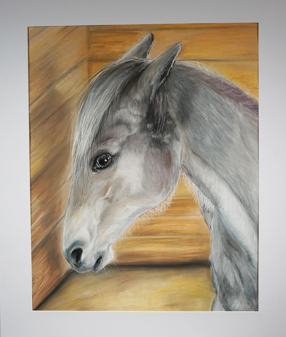 This series restarted my pastel journey. My theme is horse language. Horses are very curious animals, and they usually use their noses to explore. My focus is on close up images of noses, eyes and expression. Each drawing, I show a horse expressing a different emotion with their eyes and ears. My personal horse is especially in your space, and I am able to get many images of her face. Her pasture mates also made good subjects.